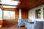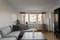 Vardagsrum med inbjudande ytor och ljusa färger. Rummet ger gott om plats för att möblera upp med en soffa och övrigt möblemang efter behov. Från rummet nås uterummet och trädgårdsytan på baksidan.