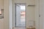 Praktisk hall med hatthylla, skoställ och en garderob för smidig förvaring. Väggarna är målade i vitt och på golvet ligger ett ljust ekparkett som löper vidare in genom bostaden. Från hallen når man bostadens badrum och kök.