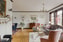 Köket är praktiskt utformat med goda arbetsytor och en genomtänkt planlösning som fungerar väl i vardagen. Inredningen kommer från HTH och kompletteras av bänkskivor i både sten och trä vilket ger en fin kombination. De moderna vitvarorna skapar bra förutsättningar och består av diskmaskin, spishäll, spisfläkt, inbyggd ugn och mikrovågsugn samt kyl och frys i fullhöjd. Här finns plats för ett matbord där familjen kan samlas. Flera fönsterpartier släpper in rikligt med ljus och ger köket en luftig känsla. Samtidigt som utgången mot baksidan gör det enkelt att ta steget ut till trädgården.