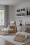 Sovrum där det ges plats för både säng och ytterligare möblemang efter behov. Rummet har målade väggar och ett ljust golv.