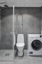 Rymligt helkaklat badrum med stilfulla färg- och designval. I badrummet finns dusch, tvättställ med kommod, spegelskåp med belysning, WC och kombinerad tvättmaskin och torktumlare.