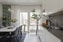 Inbjudande kök som har plats för en trevlig matplats. Köket är bra planerat och erbjuder goda arbetsytor och rikligt med skåpsförvaring. Den ljusa köksinredningen matchas snyggt mot de övriga färg- och materialvalen. Rummet får ett fint ljusinsläpp från det stora fönsterpartiet och den franska balkongen. Den maskinella köksutrustningen består av spishäll, spisfläkt, integrerad diskmaskin, inbyggd ugn och mikrovågsugn samt kyl och frys i fullhöjd.