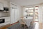 Ljust kök som erbjuder smakfull köksinredning bestående av köksluckor i vit ton. Integrerad planlösning med vardagsrummet där bardisken skapar en praktisk avskildhet samtidigt som den ger extra arbetsyta och en trevlig social yta. Ovanför arbetsytan sitter ett matchande vitt kakel som stänkskydd. Den maskinella utrustningen består av spishäll, ugn, köksfläkt, diskmaskin samt kyl och frys i fullhöjd. Från köket nås den ena balkongen.