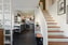 En inbjudande hall där första intrycket präglas av ljus, rymd och lugn. Skjutdörrsgarderoben ger gott om dold förvaring och hjälper till att hålla ordning. Köket ligger i direkt anslutning medan ett par trappsteg ner markerar övergången till vardagsrummets mer avkopplande del. Trappan till det övre planet är centralt placerad och binder samman våningarna på ett naturligt och stilrent sätt. Ute på framsidan ramas entrén in av välskötta ytor med en gräsmatta, stenläggning och omsorgsfullt placerade planteringar.