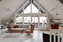 Stort vardagsrum med fantastisk rymd, härligt ljusinsläpp och takhöjd på 5,5 m. Rummet har ljust golv, öppet upp till nock samt en glasad gavel vilket ger extra karaktär. Från rummet nås bostadens stora balkong i västerläge.