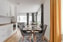 Kök och vardagsrum möts i en öppen planlösning vilket ger en social känsla samt plats för en trivsam matplats. Köket är fullutrustat med kvalitativa vitvaror som består av spishäll, spisfläkt, ugn, diskmaskin, inbyggd mikrovågsugn samt kombinerad kyl/frys. Den maskinella utrustningen går i rostfritt utförande. Bänkskivan ger en varm känsla och blir en fin kontrast mot den i övrigt vita köksinredningen. Köket har gott om förvaringslösningar och arbetsyta. Framför fönsterpartiet finns även plats för ett matbord.
