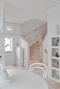 Entréplan där konceptet ljust och fräscht är enkelt att tillämpa. Ljusa ekgolv och vita väggar. Ställbar golvvärme på hela entréplanet.