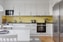 Köket är rymligt och har bra arbetsytor. Det finns gott om plats för en större matgrupp. Luckorna är i vitt och bänkskivan är i svart utförande. Stänkskyddet är i härlig gul nyans och är utav kakel. Den maskinella utrustningen är spis, ugn, fläkt, mikro, diskmaskin, kyl samt frys. Golvet är i ek parkett och väggarna är i vitt.