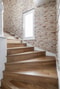Mysigt vardagsrum med parkettgolv, vita väggar och dekorativ fondvägg i form av liggande vit träpanel. Härifrån har du utgång till den härliga altanen med sol från morgon till kväll.