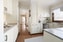 Äldre kök med vita luckor och ljust kakel ovan bänkskivor i laminat. Här finns spis med häll, fläkt samt kyl, frysbox i förrådet. Matplats finns i anslutning till köket. Linoleummatta på golv och gula tapeter.