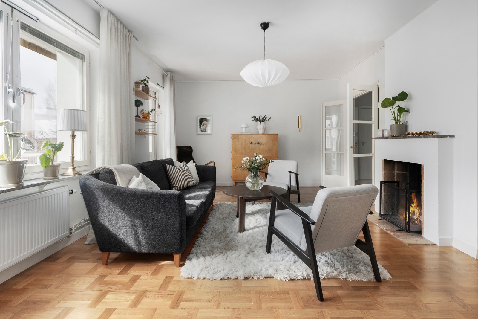 Rymlig och ljus lägenhet med eldningsbar öppen spis!