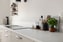 Modernt och påkostat kök från -25 med stilrena beigea luckor i kombination med inslag av valnöt i en del av luckorna och de snidade handtagen. Utrustat med integrerade vitvaror och en exklusiv bänkskiva i stenkomposit. Här finns generösa arbetsytor samt gott om plats för ett större matbord. Utrustningen består av häll med inbyggd fläkt, diskmaskin, kyl och frys samt inbyggd ugn med ångfunktion. Från köket och matplatsen nås bostadens inglasade balkong.
