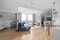 Välkomnande hall med plats för avhängning och förvaring i garderober.