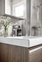 Mycket vackert badrum renoverat under 2025 med snygga val av våtrumsmatta. Här finns bekvämt toppmatad tvättmaskin. Badrummet är även utrustat med dusch med takdusch och glasvägg, vägghängt förvaringsskåp, kommod med spegelskåp ovan samt WC-stol.