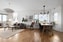 Enhetligt parkettgolv i hela lägenheten.