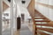Här ligger ett laminatgolv som sedan flyter vidare enhetligt i husets alla rum. Väggarna är ljusa och utrymme finns hatthylla. Härifrån nås tvättstugan.