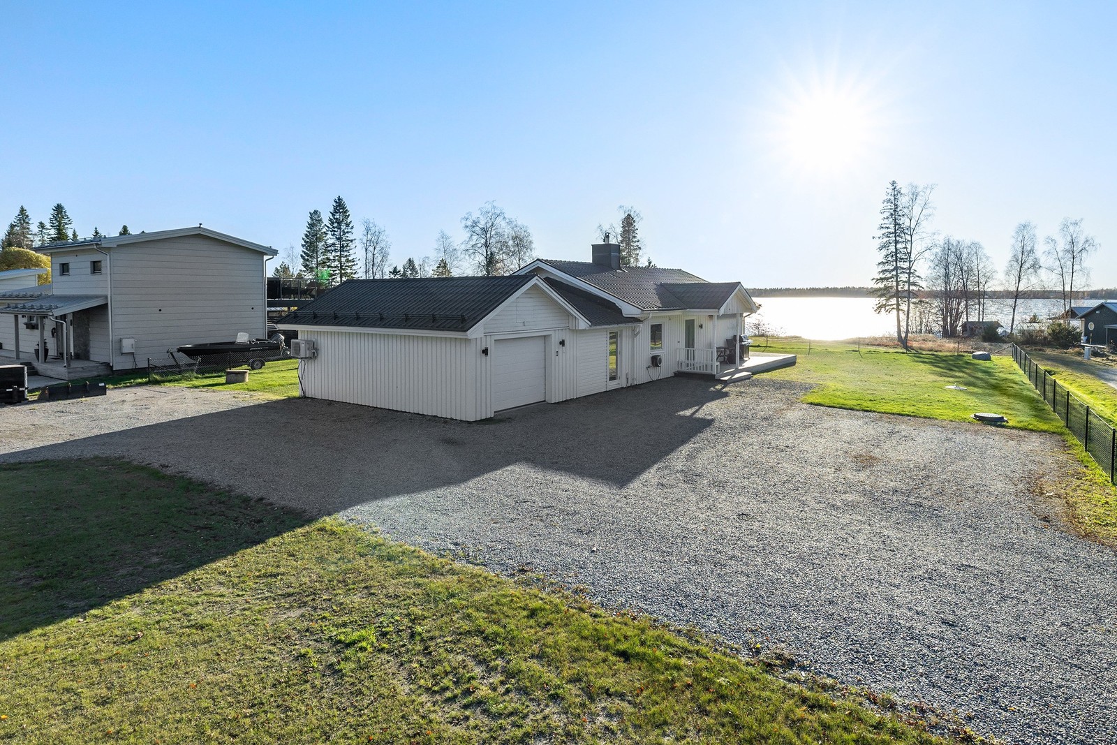 1-plansvilla på första parkett med utsikt mot havet! Stor altan som går i vinkel runt huset och har strålande utsikt mot vattnet. Från altanen nås byggnad med bastu och eldstad och på tomten finns även garage och timring.