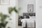 Mycket luftigt och lättmöblerat vardagsrum med vita väggar och vackert originalparkettgolv. Här ryms både soffa och matgrupp om så önskas. Från vardagsrummet når du den inglasade balkongen som har fritt söderläge mot villakvarteren.