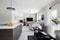 Kök och vardagsrum möts i en öppen och social planlösning som skapar generösa sällskapsytor. Det stilrena och påkostade köket byttes 2024 och är från HTH. Köket har beige köksinredning, gott om förvaring som också kompletteras av en gedigen köksö med luckor av stilfullt mörkt trä och som erbjuder både extra arbetsyta och en naturlig samlingspunkt. Intill köket finns en rymlig matplats med plats för ett större matbord. Utrustningen i köket består av häll med inbyggd fläkt, ugn, diskmaskin och både kyl och frys i fullhöjd.