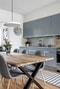 I vardagsrummet möts Du av den mäktiga takhöjden som tillsammans med den öppna planlösningen skapar en väldigt trivsam rymd. Köket från Ballingslöv har luckor i en behaglig blå-grå färg och vacker Carrara-marmor som bänkskiva och stänkskydd. Här finns gott om förvaring och fina vitvaror från nyproduktionen; integrerad kyl och frys i fullföljd, integrerad diskmaskin, spis och fläkt. Den öppna planlösningen ger möjlighet till olika möbleringsalternativ för både vardagsrumsmöbler och för matplats där du kan duka för större bjudningar. Från vardagsrummet nås den fina uteplatsen som under åren bjudit på många soliga frukostar och mysiga middagar. Enstavigt parkettgolv löper tröskelfritt mellan rummen och väggarna är målade.