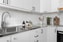 Ljust och luftigt kök med stor arbetsyta. Vitt kakel, vit köksinredning samt fullstor kyl och frys. Mycket köksskåp som erbjuder ger goda möjligheter för förvaring, det finns även plats för en matgrupp. Utrustat med kyl, frys, spis, ugn och fläkt. Plastmatta och ljusa väggar.
