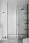 Badrum i helkaklat utförande och med snyggt inslag av Carrarramarmor på golv och i duschhörnan. Badrummet är inrett med stor tvättställskommod med förvaring i lådor, spegelskåp och duschplats med takdusch och invikbara glasväggar. Badrummet är försett med el-golvvärme.