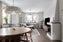 En trappa upp möts du av en ljus och inbjudande bostad med högt i tak och behaglig färgsättning på väggar och golv. Tack vare gavelläget ges ett fint ljusinsläpp från flera väderstreck som bidrar till den luftiga känslan. Vardagsrummet erbjuder sociala ytor med plats för både större soffgrupp och matsalsmöbel – perfekt för såväl vardag som middagsbjudningar. Den dekorativa kaminen blir ett stämningsfullt inslag i rummet.