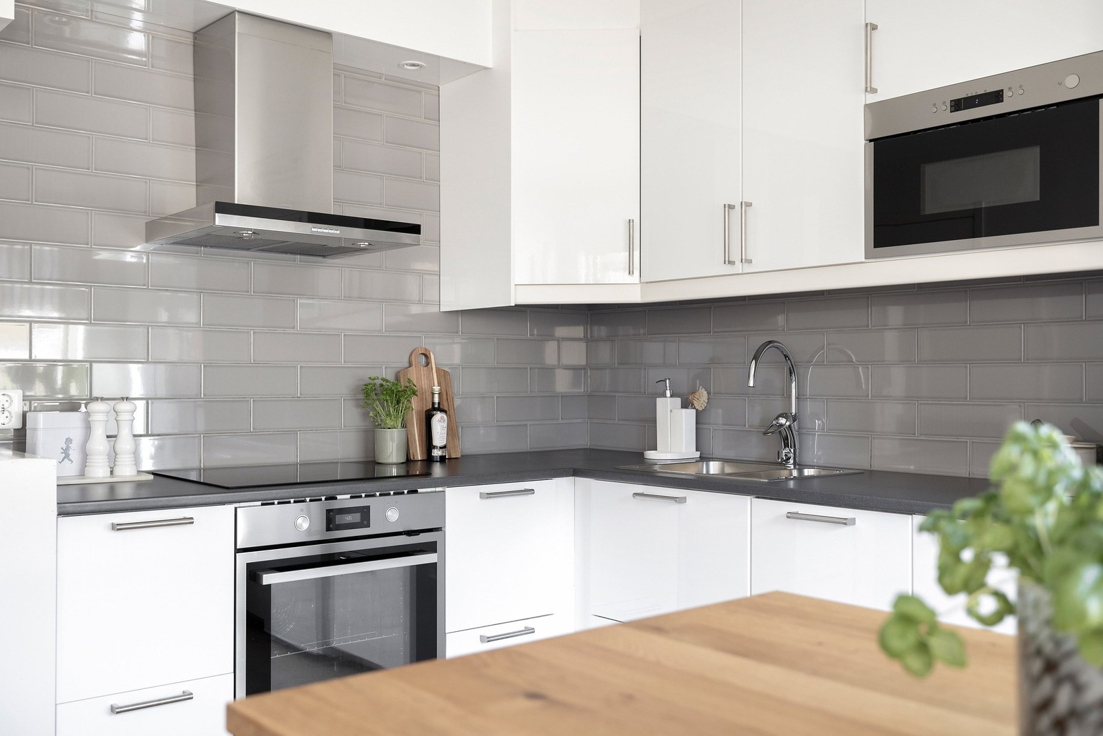 Stilrent och tidlöst inrett kök från 2021 i klassiskt vitt utförande. Här finns goda arbetsytor och förvaring samt plats för matgrupp om cirka fyra personer, i dagsläget har nuvarande ägare inrett med en "flyttbar" köksö istället för matbord. Utrustningen består av ugn, häll, fläkt, diskmaskin samt kombinerad kyl/frys. Alla vitvaror byttes ut i samband med renoveringen förutom den kombinerade kyl/frysen som byttes ut 2018.
