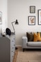 Det trivsamma vardagsrummet har ett generöst ljusinsläpp och gott om utrymme för soffgrupp, skrivbord, och tv-möbel. En dörr leder ut till den franska balkongen. I sovalkoven finns tillräckligt med plats för en rymlig säng och tillhörande sängbord.