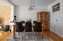 Vardagsrummet har genomgående parkettgolv, vitmålade väggar och en dekorativ vägg i sten som ger rummet karaktär. Här finns gott om plats för både soffgrupp och matbord, och den inbyggda belysningen med spotlights skapar en trivsam känsla. Från vardagsrummet nås även den trevliga tomten med uteplats.