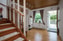 Inbjudande hall med praktisk avhängningsmöjlighet. En stilfull hall med genomgående parkettgolv och ljusa målade väggar.