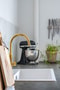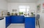 Kök med generös förvaring samt stora arbetsytor. Blåa skåpsluckor, stänkskydd av granitkeramik med marmorimitation samt bänkskiva i laminat (2022). Köket är utrustat med kyl och frys, diskmaskin, induktionshäll, fläkt samt ugn. Vinylgolv med ljust målade väggar.