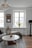 Luftigt och ljust vardagsrum med parkettgolv och målade väggar. Plats för soffgrupp, tv bänk och matbord. Här erbjuds stora fönster och generösa sällskapsytor. Genom detta rum når du balkongen i västläge.