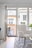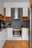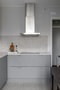 Praktiskt och smakfullt kök (2020) från HTH med ljusgråa köksluckor, bänkskiva i kompositsten och stänkskydd av mosaik i antikmarmor. Maskinell utrustning i form av ugn, induktionshäll, inbyggd mikro, kyl/frys, diskmaskin och fläkt. Intilliggande matplats.