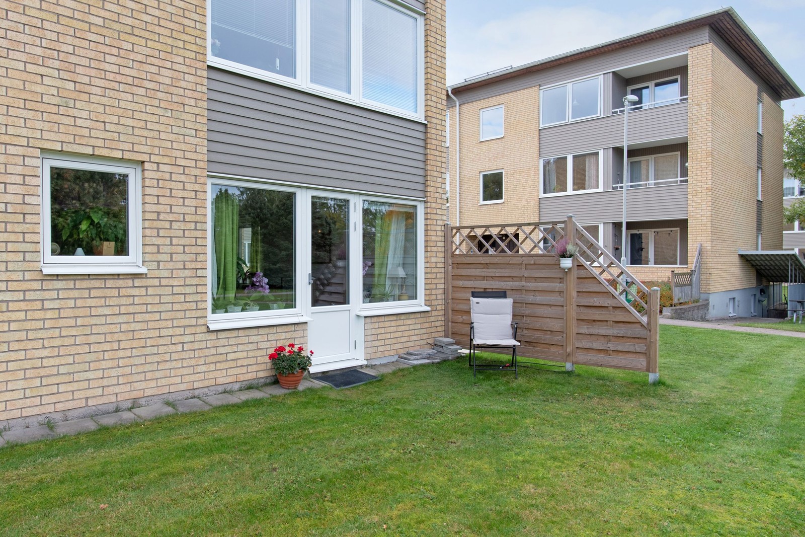 Nu finns möjligheten att förvärva en bekväm, modernt renoverad gavellägenhet med balkong på framsidan och även med möjlighet till uteplats på baksidan, med utgång till gräsmattan direkt från vardagsrummet. Stort ljusinsläpp finns tack vare fönster i tre väderstreck och bostaden har trots sitt markplansläge en begränsad insyn.
