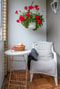 Det trevliga gavelläget med de stora fönsterpartierna ger ett härligt ljusinsläpp till lägenheten. Vardagsrummet upplevs rymligt och ljust. Den välplanerade ytan gör det enkelt att möblera för både soffgrupp och tv-möbel. Laminatgolv och målade väggar.