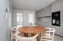 Ljust vardagsrum med fint ljusinsläpp. Här finns plats för både matbord och soffgrupp samt utgång till balkong.