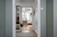 Välkommen in. Här möts man av en vacker platsbyggd förvaringsenhet med skoställ, sittbänk, hyllplan och krokar för avhängning och förvaring. Hallen är rymlig med högt i tak som genomsyrar hela lägenheten. På golvet ligger ett vackert trägolv och väggarna är vitmålade.