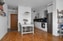 Köket är välutrustat med allt som behövs för en bekväm vardag och extra tillval i form av rostfria maskiner och stenskiva. Med sina vita luckor mot den svarta stenskivan och mörka beslag ger köket ett lyxigt intryck. Ett av skåpen har även vitringlas. Mellan kök och allrum finns gott om plats för ett större matbord i den öppna planlösningen. Allrummet har fönster med dagsljus i insynsskyddat läge mot kringliggande byggnad. Här ryms både soffa, mediamöbler och bokhylla.