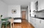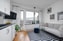 Modernt kök med vita släta luckor kombinerat med ljus grått kakel ovan diskbänk av granit. Köket är utrustat med kyl/frys, ugn, integrerad micro, induktionshäll, fläkt samt diskmaskin. Ljusa väggar och parkettgolv.