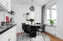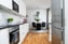 Köket är smakfullt inrett med bänkskiva i laminat, vitt kakel ovanför arbetsyta samt vita skåpluckor. Den maskinella utrustningen med högkvalitativa vitvaror består utav induktionshäll, varmluftsugn, fläkt, mikro, diskmaskin samt kyl/frys. Här finns gott om plats för matbord för det större sällskapet. Parkettgolv och ljusa väggar.