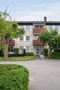 Trevliga gemensamma gårdsytor med sittplatser, gräsytor och planteringar.