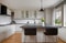Köket är generöst utformat med påkostade materialval och god arbetsyta. Den stora köksön blir hemmets naturliga mittpunkt – perfekt för såväl matlagning som sociala tillställningar. Den moderna utrustningen och de stilrena ytorna skapar en elegant och funktionell helhet.
