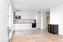 Vardagsrum ligger i öppen planlösning mot köket, här finns plats för soffgrupp, tv-bänk och matplats om så önskas. Vitlaserad ek 3-stav parkett med ljust målade väggar.