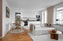 Vardagsrum ligger i öppen planlösning mot köket och ger plats för soffgrupp och matbord. Från vardagsrummet når du den inglasade balkongen mot innergården i söderläge.