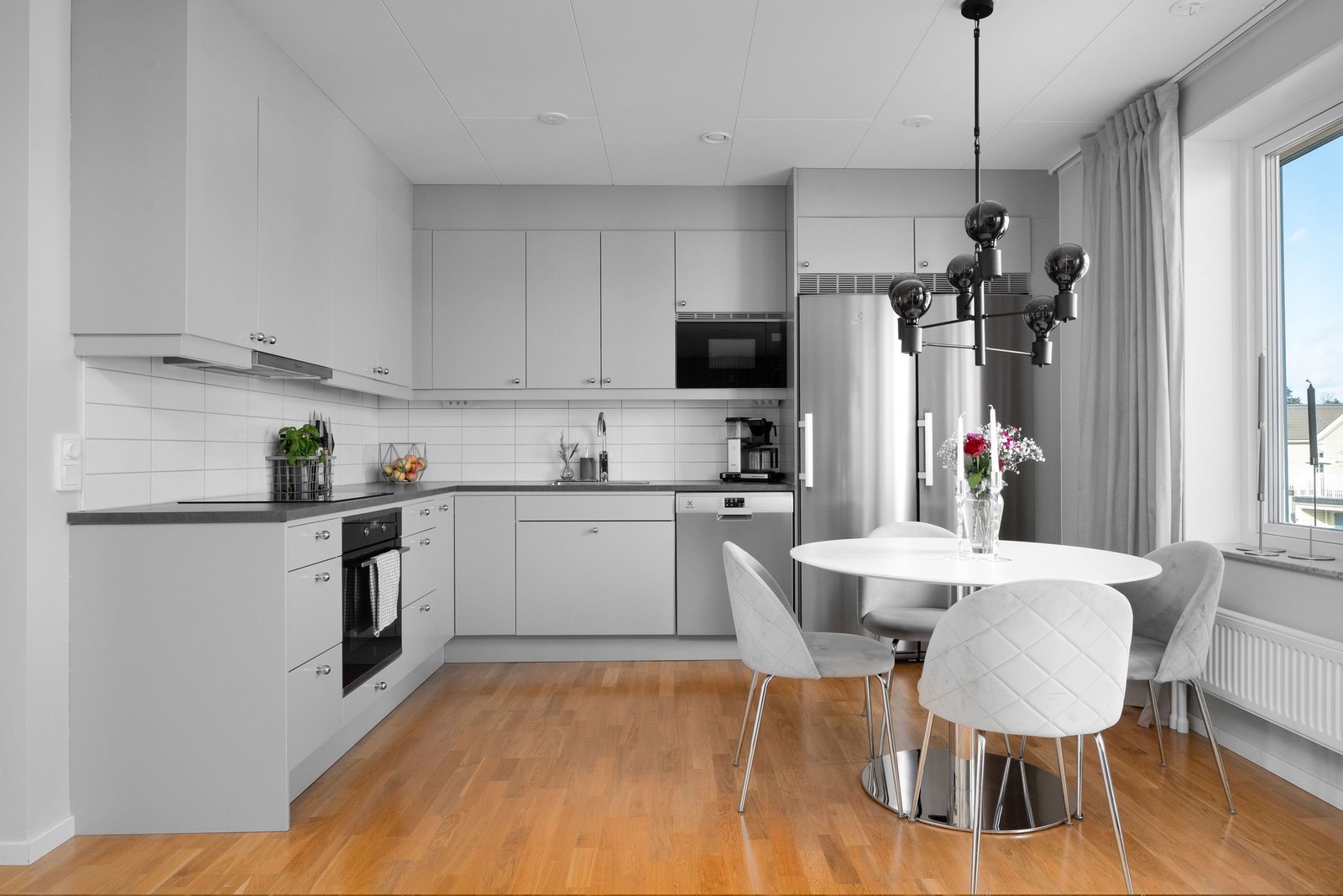 Lägenheten erbjuder modernt kök med exklusiva materialval. Kök och vardagsrum ligger i öppen planlösning vilket skapar en social atmosfär. Vardagsrummet genomsyras av ljus och rymd tack vare de härliga fönsterpartierna, från vardagsrummet nås bostadens väl tilltagna balkong med utrymme för möblering. Balkongen är inredd med utekök utrustat med bänkskiva i vinkel, förvaring bakom skåpsluckor och kyl. I lägenheten finns tre sovrum varav ett större föräldrasovrum. Vidare erbjuds helkaklad wc och helkaklat badrum utrustat med tvättmaskin och torktumlare. I den välkomnande hallen finns utrymme för förvaring i garderober och klädkammare. Utöver balkongen finns möblerbar loftgång vid entrén vilket ger möjlighet att avnjuta både kvällsol och morgonsol. Till lägenheten följer en parkeringsplats.