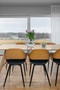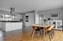 Invändigt möts du av en imponerande takhöjd och en öppen luftig planlösning där kök och vardagsrum smälter samman. De stora fönsterpartierna bjuder in naturen och förstärker känslan av rymd och ljus. Vardagsrummet är rymligt och kan med fördel delas in i två sektioner med både matplats och soffgrupp – perfekt för sociala sammanhang. Köket är stilrent och funktionellt med en central köksö, generösa arbetsytor med exklusiv bänkskiva samt ett elegant klinkergolv.
