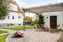 Plattsatt uteplats mot garagebyggnaden med överbyggd pergola. Trädäck/terrass intill utbyggnaden. Plattsatt mindre uteplats intill flaggstång.