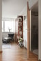 Planlösningen följer helt och hållet ett modernt spår med kök och sällskapsytor i öppen i planlösning och två sovrum i den andra delen med något avskild placering och badrum mellan. Den sociala avdelningen får extra mycket ljus och kontakt med omgivningarna genom både fönsterpartier och balkong. Ytterligare ett härligt rum finns vid entréhallen och nyttjas idag som allrum men passar lika bra som master bedroom. Detta rum har direkt åtkomst till det andra badrummet. Hemmet har en genomgående känsla av luft, ljus och tidlöshet. Materialvalen går i skandinaviskt utförande med ek som grund och färgskalan med en bas av vitt och grått. Överraskande inslag kommer från en öppning i hallen som får ljuset att strömma in och tapetserade väggpartier i vissa av rummen. Det som också får lägenheten att sticka ut är mängden av förvaringsutrymme genom såväl skjutdörrsgarderober som klädkammare. Som den enda på våningen har du lyxen att kunna kliva in i hissen rakt utanför dörren och åka ner till bilen i parkeringsgaraget. När gäster kommer på besök finns en lägenhet att låna.