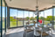 Via en passage till höger om hallen öppnar sig den härliga sociala avdelningen som är inramad av flera fönsterpartier mot öst, väst och söder vilket får rummen att bada i ljus. Utsikten är lika extraordinär som vidsträckt över Ängelholm. Här vandrar blicken bland annat ut över stadens hustak, skogens grönska och Rönne å med Carl den XV’s bro som sträcker sig i en mjuk båge över. Köket har en indragen placering i avdelningen med utsikt över sällskapsytorna och balkongen i förlängning via en bred köksö. Interiören från Vedum är klassisk och stilren med vita släta luckor, mosaik på vägg och bänkskivor av sten. En av väggarna är tapetserade i ett gråblått motiv. Bland utrustningen finns bland annat en rymlig vinkyl samt kyl och frys sida vid sida med ismaskin. Gott om plats för att duka upp till många finns i matplatsen som har en given placering längs med de omfattande fönsterraderna i rummets vänstra del. Generöst med yta för avkoppling och umgänge finns i andra sidan där väggarna delvis är tapetserade. Mellan matplatsen och balkongen finns en takhängd etanolkamin av gjutjärn som skapar stämning vintertid.